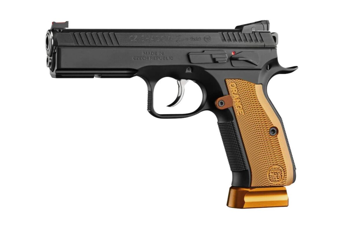 - CZ Shadow 2 Orange: Wersja premium, często określana jako „pół-customowa”. Każdy egzemplarz jest ręcznie pasowany przez rusznikarzy w fabryce CZ, co zapewnia minimalne tolerancje między zamkiem a szkieletem. Posiada polerowaną lufę osadzoną w tulei (bushing) w stylu pistoletu 1911, co dodatkowo zwiększa precyzję. Spust jest fabrycznie tuningowany, a pistolet wyróżnia się charakterystycznymi pomarańczowymi okładzinami chwytu i stopkami magazynków.
